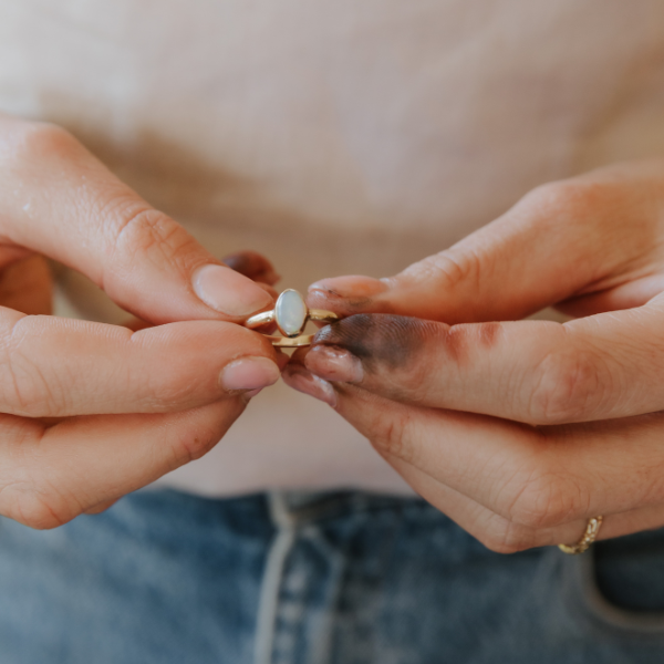 Sterling silver may naturally tarnish over time as it reacts with air, moisture, and the oils on your skin. This is a normal process and can be easily cared for with a few simple steps.