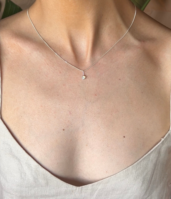 Featuring a Coober Pedy crystal opal in a sterling silver handmade organic bezel, glowing softly. Perfect for layering with the other necklaces in my collection. Each piece is made by my hands, a quiet celebration of devotion and grace.