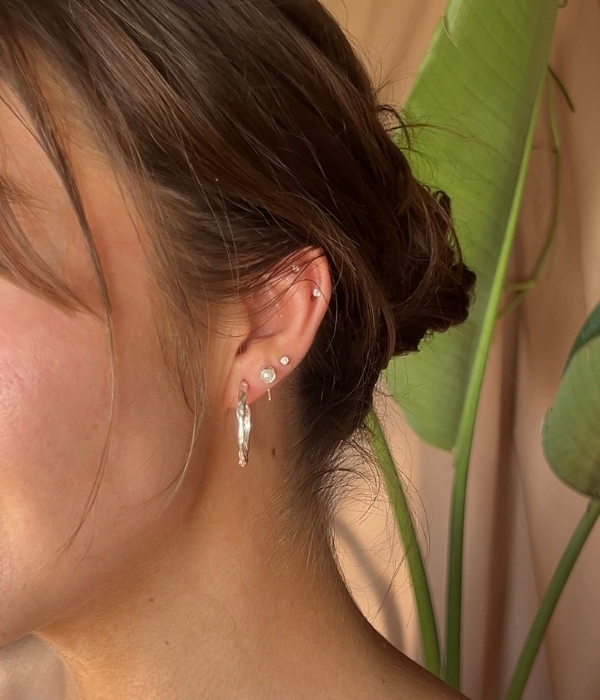 • Seed pearls • Sterling silver huggies • Adjustable, no poking or snagging • Small batch slow made.