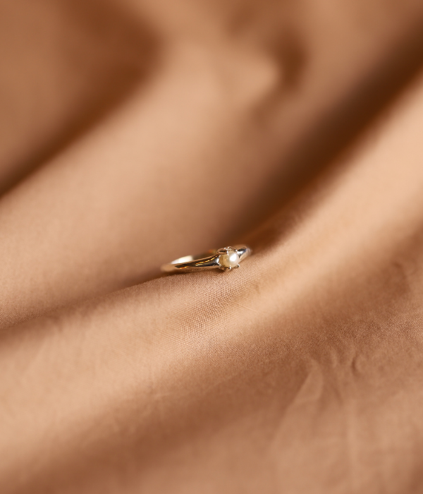 The Leah Ring features a luminous 4mm seed pearl delicately set in silver claws on a 2.5mm sterling silver band. Its natural glow captures the beauty of quiet moments and the grace found in everyday life.