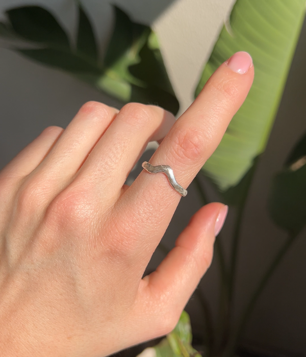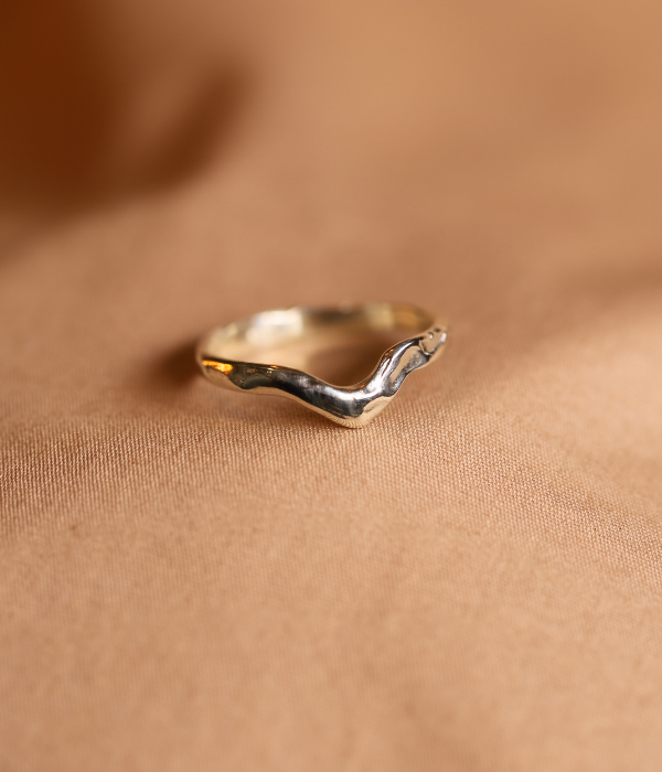 The Michelle Ring features a 2mm sterling silver wishbone band, symbolising intuition, light, and the quiet power of self-assurance. Elegant and timeless, it reflects the natural balance of softness and strength.